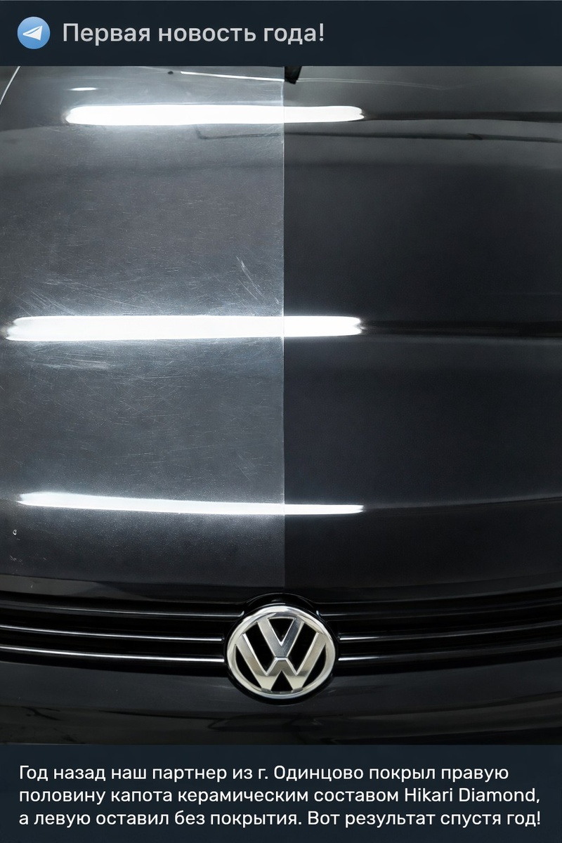 Год назад наш партнёр из г. Одинцово, детейлинг-центр «Авто Блеск», провёл наглядный эксперимент. Одну половину капота покрыли керамическим составом Hikari Diamond, вторую оставили без защиты. Один год обычной эксплуатации автомобиля: мойки, реагенты, солнце, дождь. 📸 Результат — на фото. Слева — потёртости и уставший лак. Справа — глубокий блеск и визуально сохранённое ЛКП. Hikari Diamond — не эффект в день нанесения. Это защита, которая остаётся спустя годы. 👉 Закажите оригинальную керамику с БЕСПЛАТНОЙ доставкой на официальном сайте: 🌐 hikari-official.ru Хотите такой же результат без экспериментов? 📍 Партнёр Hikari RUSSIA — детейлинг-центр «Авто Блеск», г. Одинцово: 📲 Запись на керамо-детейлинг: +7 (926) 042-42-40