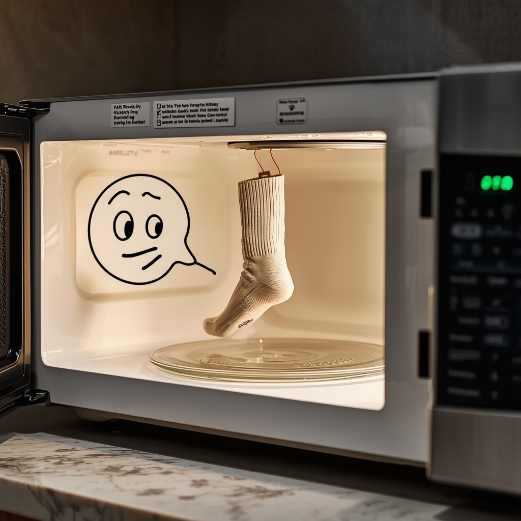 Признавайтесь, у кого в голове сейчас пронеслось: «Автор, ты совсем того?!». Понимаю, звучит как полный бред и призыв спалить кухню дотла. Но пристегните ремни — в крайне редких и исключительных случаях это работает! Как? Сейчас расскажу, но сразу дам главный лайфхак: лучший способ использовать эту статью — не повторять этого дома, а прочитать и удивиться 😉. Забудьте о полноценной стирке. Речь идет о точечном, экстренном спасении одной небольшой вещи, когда все классические методы недоступны. Например, вы в походе в домике с чудом-микроволновкой 90-х, но без воды. Или вам жизненно нужно высушить и продезинфицировать один носок перед важной встречей (бывает же всякое!). Потенциальный плюс один: дезинфекция. Микроволновка убивает некоторые бактерии и микробы за счет нагрева и пара. Но это не точно и не от всех загрязнений. А вот это — святое. Нарушите, и вирусной станет уже новость о пожаре в вашем доме. Допустим, ваш энтузиазм непобедим, а риск — ваше второе имя. Тогда протокол «Мокрый