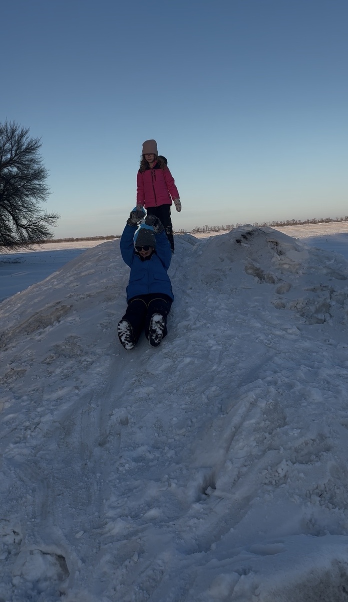 По приезду домой Маша вывела детей во двор. Часа через пол я вышла к ним и увидела, как они на небольших ледянках катаются с горок, которые муж нагреб трактором.