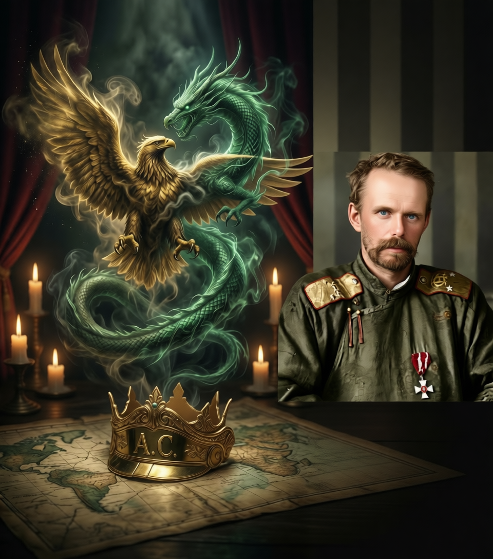 Зеленый Дракон барона Унгерна, ставший для него и его казаков символом веры в грядущее возрождение Царской России. Золотые погоны русского генерала с литерами «А.С.» – «Атаман Семенов». Под ними – не просто офицер, а человек-загадка, барон Роман Федорович фон Унгерн-Штернберг. На фоне прочих белых командиров он выделялся не только лихой казачьей удалью, но и особым внутренним миром, в котором переплелись долг, мистика и мечта о престоле. Говоря об «ордене Зеленого Дракона», важно понимать: это была не формальная организация с уставом и членскими билетами. Скорее, это была внутренняя идея, духовный стержень, вокруг которого барон стремился объединить своих сторонников. Для Унгерна, глубоко интересовавшегося культурами Востока, дракон был не чудовищем, а древним символом космической силы, мудрости и защиты. В условиях хаоса и братоубийственной войны этот образ стал для него метафорой той могущественной и спасительной власти, которая, по его убеждению, должна была подняться над Русью. Зе