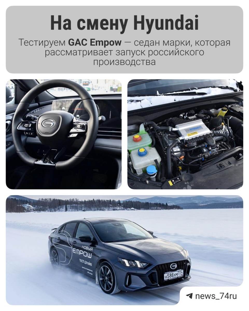 И это не JAC, которые более известны в России и на базе которых делают «Москвичи» и «Соллерсы», это именно другой бренд — GAC. Перед нами — автомобиль-выскочка, у которого экран меньше драйверских амбиций. Открываешь капот GAC Empow, а там поверх мотора вместо декоративной крышки прилип мудреный узел со множеством патрубков и отдельным бачком с зеленой жидкостью. Впрыск закиси азота? Механический компрессор? Нет, это жидкостный охладитель наддувочного воздуха. Где вы такое видали? 🟥 Что за бренд. Марка GAC в России не слишком известная, но упорная: продажи мало-помалу растут, а главное, она является претендентом на замену Hyundai и Kia на петербургском заводе альянса. Сборка началась еще в прошлом году, и неизвестно, продолжится ли, но дни проекта Solaris, похоже, сочтены, а значит, шансы у GAC есть. 🟥 Что внутри. Под капотом здесь 1,5-литровая «четверка», форсированная до 170 л. с. за счет давления наддува более 1,6 атмосферы. При обычной езде он производит впечатление машины дисц