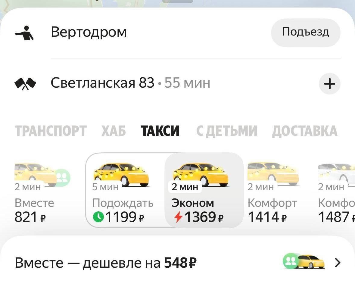 На фоне 10-балльных пробок во Владивостоке резко подорожали поездки на такси. Независимо от района, стоимость выросла в два, а местами и в три раза. Так, поездка с Патрокла в центр города сейчас обходится минимум в 1150 рублей в тарифе «эконом», от 1380 — в «комфорте» и свыше 2000 рублей — в «комфорт+». Пользователи жалуются, что цены обновляются каждые несколько минут и продолжают расти. 📲 Хотите поделиться новостью ❔ Написать в Приморье | Онлайн️ ✉️