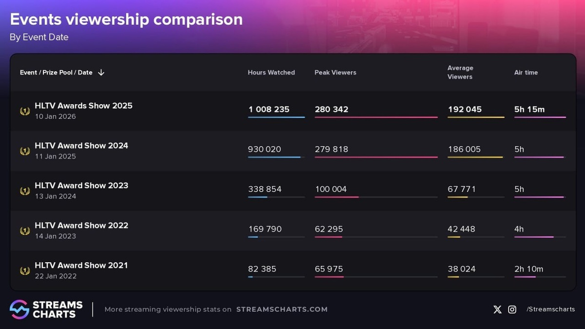 HLTV Awards 2025 установила рекорд по просмотрам, став самой популярной церемонией за всю историю премии.