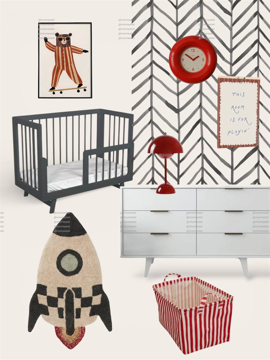 🧡 -теперь это один из моих самых любимых проектов Кровать Обои Часы Настенные плакат и панно Настольная лампа Комод Ковер Корзина *не реклама #интерьердетской