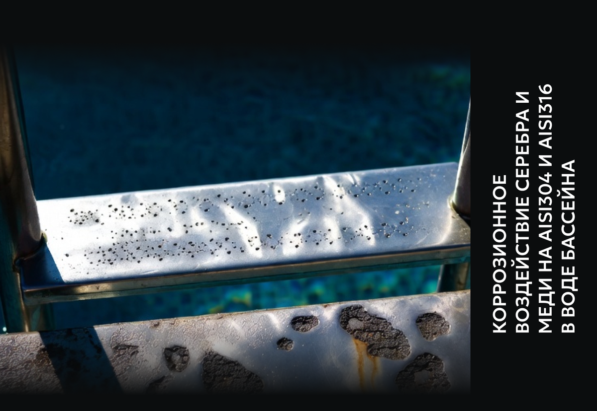 - Типичные концентрации серебра (до 0,1 мг/л) и меди (до 1 мг/л) в бассейновой воде не вызывают коррозии нержавеющих сталей