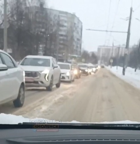 Гигантская пробка парализовала движение в районе Киселевки в Смоленске