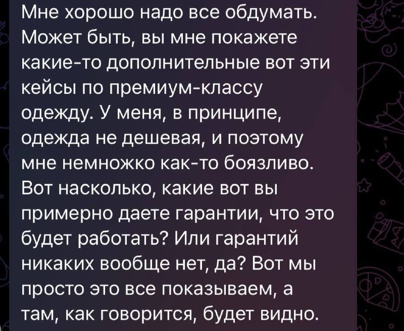 » Часто вижу людей, которые годами не могут начать продвижение. Читают, вникают, задают вопросы и все равно боятся. Им важно заранее все просчитать, подстелить соломку... И если есть риски, то проще просто стоять на месте. 🏆Есть фраза: «Успешные люди принимают решения быстро». Я тут прикинула, походу правда) Все наши сильные клиенты заходили в работу сразу, без раздумий и бесконечных уточнений. Основная часть этих клиентов работала с нами минимум год, другие возвращаются на запуски, с кем-то рекламируемся без пауз. Такие люди понимают риски, не вкладывают последние деньги и не относятся к рекламе как к «последнему шансу». Да, можно опираться на опыт, кейсы и цифры (у меня их уже десяток точно в товарке). Но я также знаю, что реклама это только один из факторов. 🏆 У нас были проекты, где продажи не росли потому что не было нормальной отработки входящих обращений. Какие ж могут быть гарантии продаж, если нет системы? Но при этом я могу дать на старте другое: вовлечённость, пр
