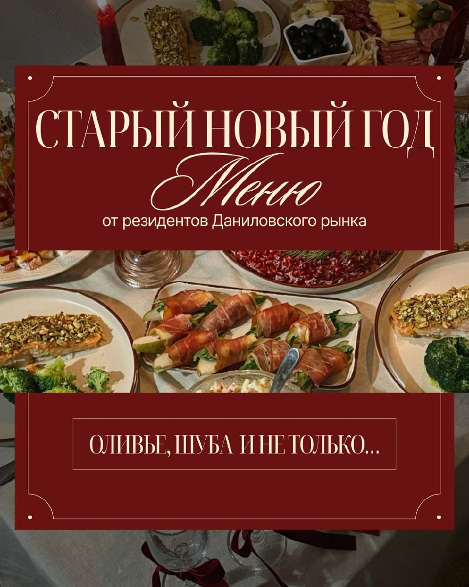 … У нас есть отличные новости! 🤫 К Старому Новому году всё организуем с быстрой доставкой, а любимые праздничные блюда приготовят резиденты Даниловского рынка: ресторан Моя Любовь, Пловаш, ПриМясе и грузинский корнер Morti. 😋А вам останется только выбрать кухню и позвонить нам. 📞 +7 (925) 228-28-27 📱 @Danilovsky_Riga
