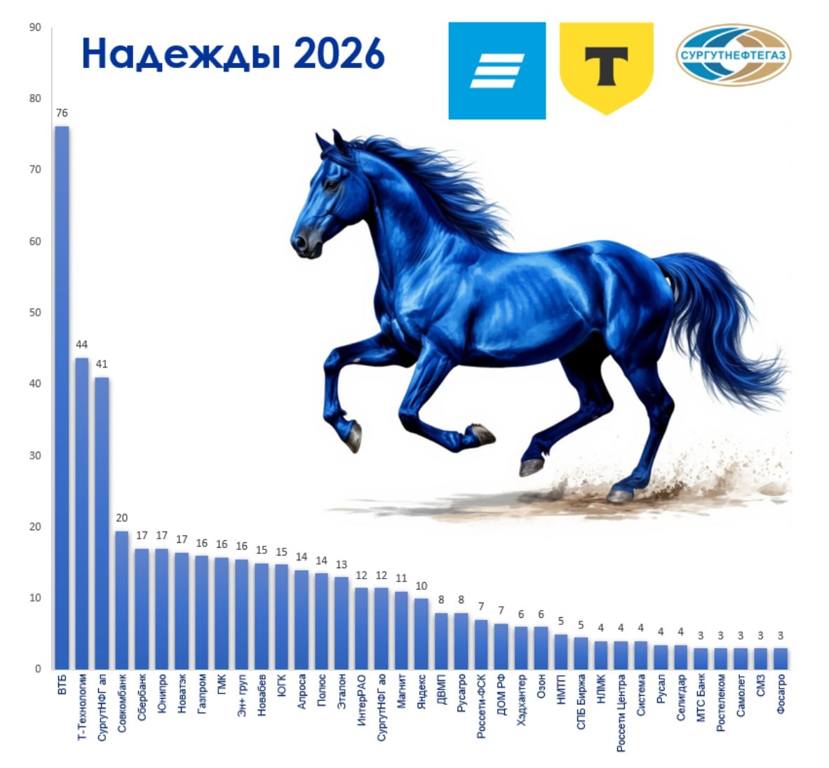 Коллеги с Аленки сделали голосование по лучшим акциям на 2026. Компании, собравшие максимальное число голосов — на скриншоте. Давайте пробежимся по хайлайтам: — ВТБ занял первое место (76 голосов из 531). Более подробно этот кейс мы разбирали в недавнем видео. Компания вышла на путь исправления, начала платить дивиденды и в следующем году инвесторы надеются, что традиция продолжится. — Т-Технологии — тот случай, когда консенсус избушек и частных инвесторов совпал. При этом, другой фаворит аналитиков — озон — получил только 6 голосов. И в этом выборе мы скорее сходимся с частными инвесторами, а не с аналитиками. — Сургут Преф — весь рынок ждет ослабление рубля в этом году. При этом, за 2025 год компания заплатит маленький див, потенциально открыв возможность зайти подешевле. — СМЗ получил 3 голоса. Кто вы, воины? Спасибо Алёнке за то, что держит руку на пульсе рынка! @harmful_investor