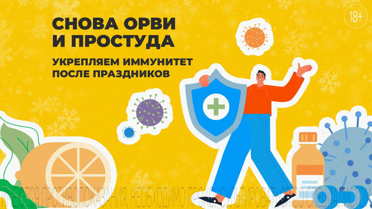 Зима — тяжелое время для иммунитета. В рационе уменьшается количество овощей и фруктов, погода ухудшается, солнце почти не появляется на небе. Новогодние выходные тоже сказываются: изменение питания и недосып больше всего влияют на здоровье. Впереди ещё половина зимы, поэтому собрали в статье советы, как пережить это время без соплей и больного горла всей семьёй. После Нового года сложно не только вам — иммунитет к этому времени тоже уже достаточно истощился. Сбитый режим сна и изменения в рационе ещё больше ухудшают способность организма защищаться от вирусов и бактерий. Если хотите закончить зиму без больничного, приступайте к укреплению иммунитета уже сейчас.