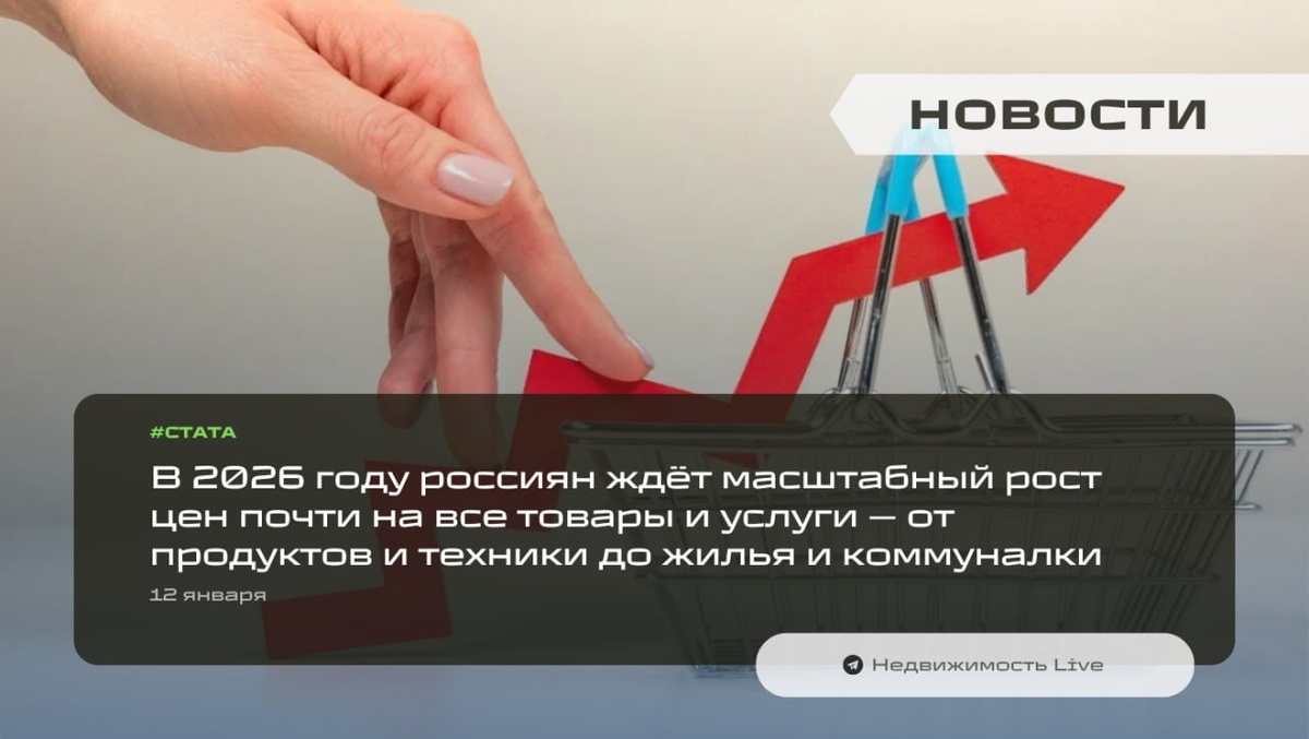 ⚡️ В 2026 году россиян ждёт масштабный рост цен почти на все товары и услуги — от продуктов и техники до жилья и коммуналки