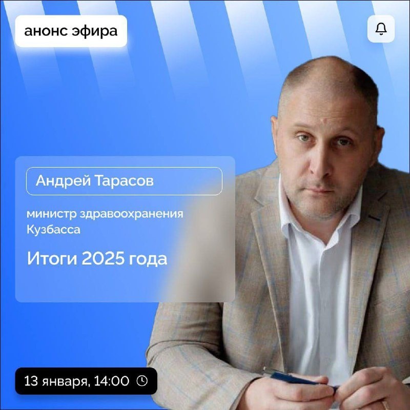 13 января министр здравоохранения Кузбасса Андрей Тарасов в прямом эфире ЦУР Кузбасса подведет итоги за 2025 год