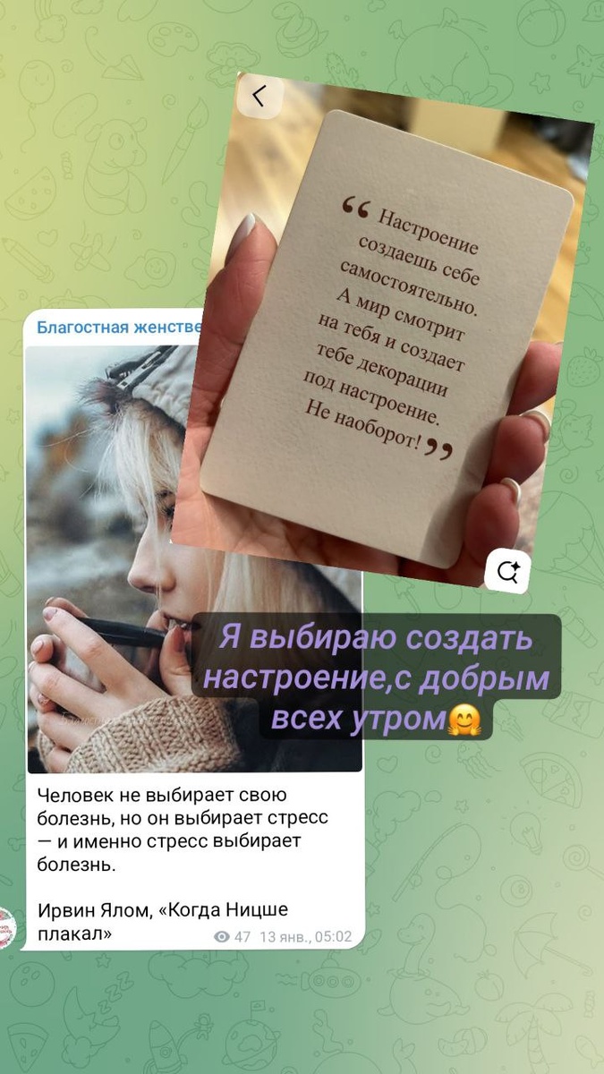 !!! Я когда это поняла, многое тут же стало меняться) Что-то не устраивает, прими решение, сделай выбор Сложно, страшно, но оно того стоит, даже если речь о не любимой работе, для многих уволится сложнее всего, я почти весь декрет к этому шла 😉 Ох уж эта "стабильность"))