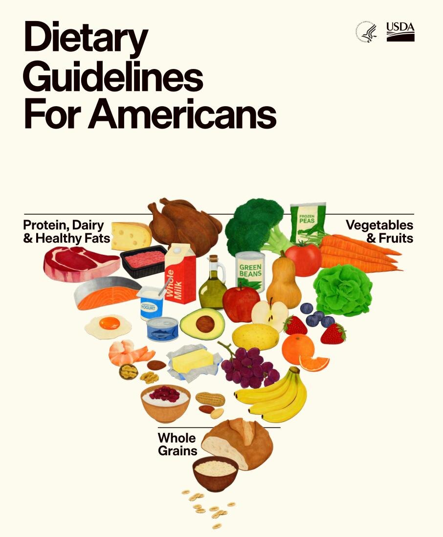 ? Эта новость подняла на уши врачей, нутрициологов и всё профессиональное сообщество. FDA и связанные с ней экспертные комитеты, которые десятилетиями задают тон тому, что во всём мире считается «здоровым питанием», представили новые Dietary Guidelines for Americans 2025–2030. Если верить заголовкам, то это почти революция: пищевую пирамиду «перевернули», жиры реабилитировали, красное мясо больше не враг. Но если почитать сам документ, то можно понять, что революции не произошло, есть адекватные рекомендации, а есть спорные. Общий посыл гайда: «Мы возвращаем настоящую еду в центр рациона. Еду, которая питает тело, восстанавливает здоровье, даёт энергию и побуждает к движению». Разберемся глубже, что же нам предлагают: ➡️Жиры - можно! В прошлом гайдлайне жиры прямо связывались с повышением ЛПНП, риском сердечно-сосудистых заболеваниями, необходимостью замещения их ненасыщенными жирами. В новом гайде сохраняется рекомендация ограничивать насыщенные жиры до 10% суточной калорийност