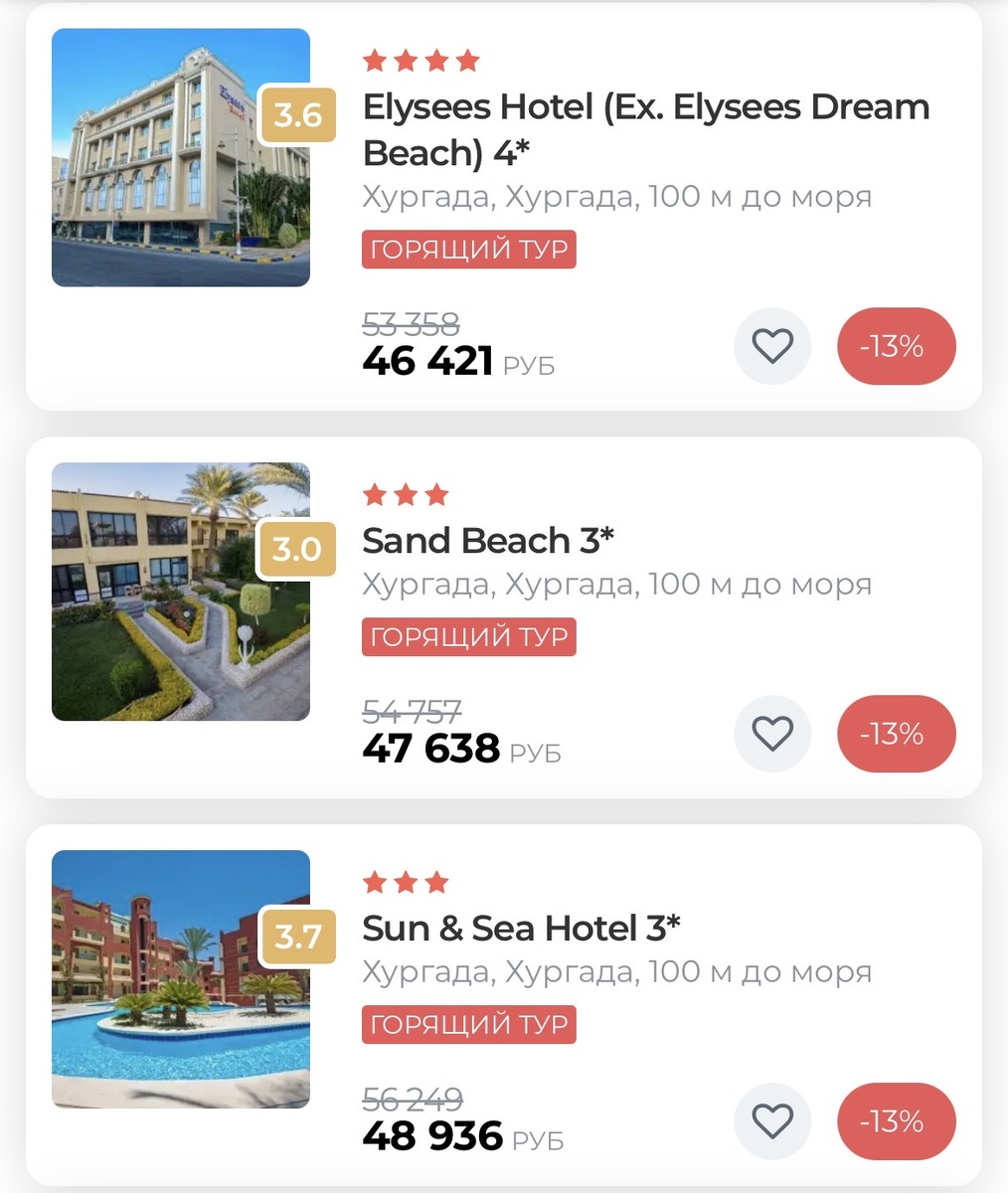Далее про эти три отеля со скрина, ценники на них даны для понимания ценообразования по Египту. Желательно в эти отели НЕ гнать.