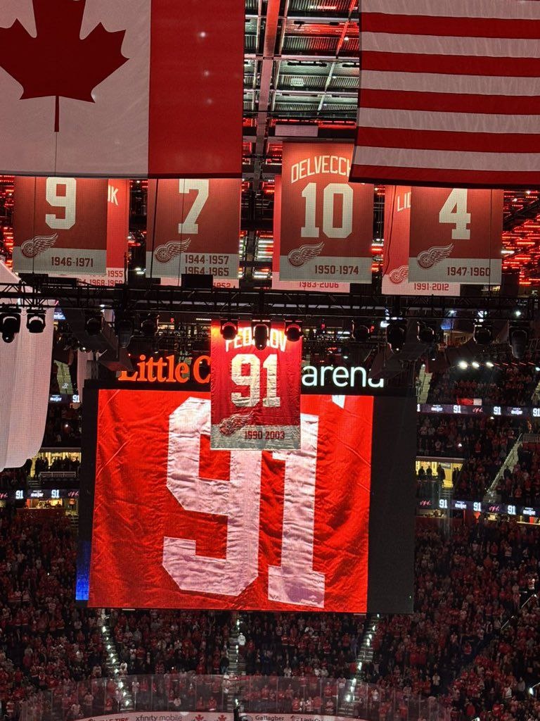 И это моя вина — Заявил Сергей Фёдоров на церемонии в честь него, которая прошла сегодня ночью. Действительно, карьера Сергея вне красно-белых цветов уже не была такой звёздной, особенно в «Коламбусе». Ну а так справедливость восторжествовала: Фёдоров очень много сделал для «Красных крыльев», баннер с 91-м номером под сводами арены должен был оказаться уже давно. @pro_nhl_ru