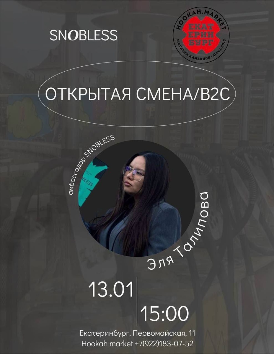 Мне тут скинули инфу что SNOBLES решил разогнать наш жирочек, накопленный на праздничных и погнать нас в центр на Первомайскую 11. Обещают с 15 до 19 дегустационную линию их ароматов и розыгрыш в конце мероприятия. Отличный повод кстати заглянуть к ребятам из Hookah Market и чекнуть повышение цен, кто не в курсе - с начала года цены должны были подняться, в связи с повышением налогов. А пока солнце ещё высоко - ебашим дальше, деньги на новый кальян сами себя не заработают 😁 Пишем в комментах - у кого, что интересного произошло, за время отсутствия в офисе? 🦕 ❤️ SvobodaEVRO | Рубрикатор | Чат