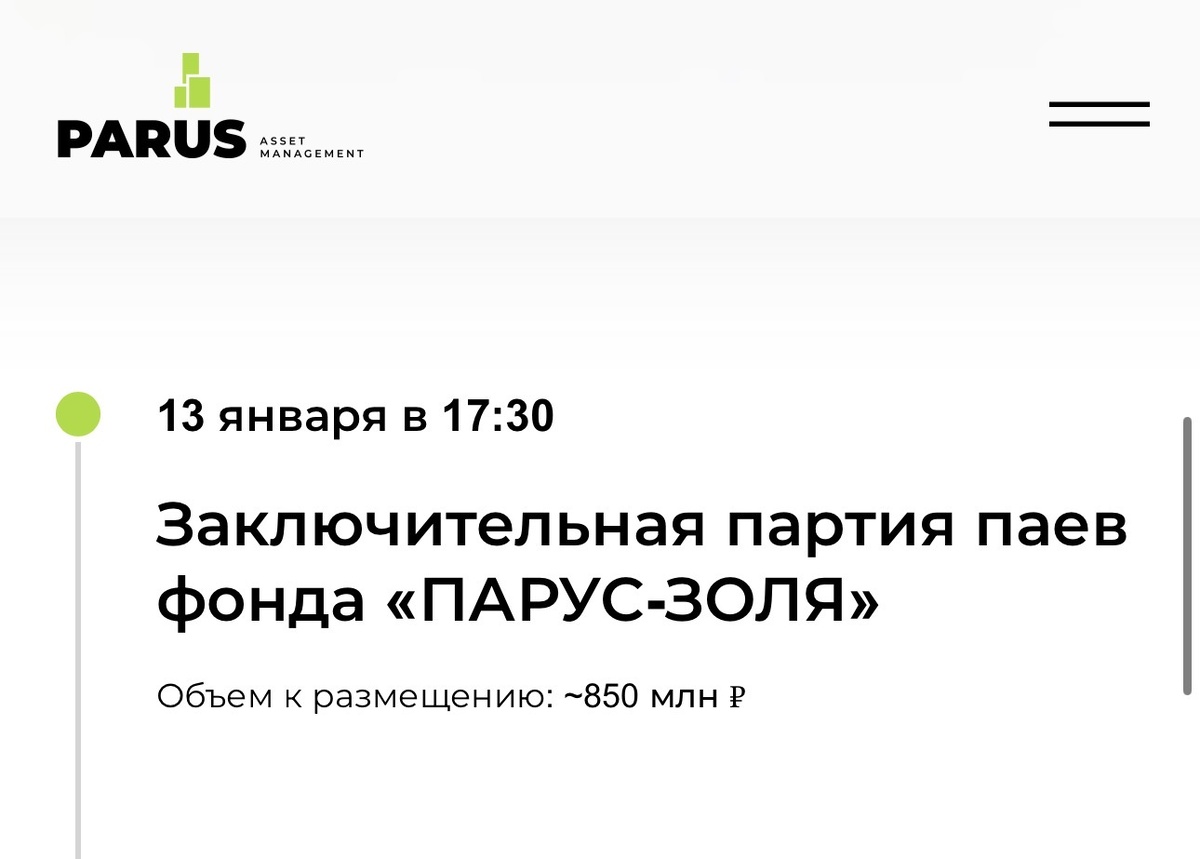 Сегодня в ПАРУС-ЗОЛЯ намечается сниежние цены к цифре 900₽ из-за финального размещения паев.