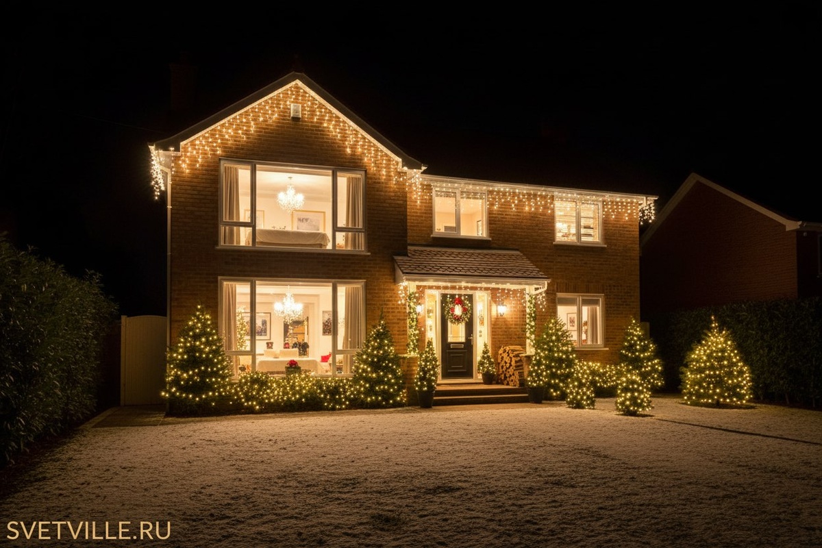 ✨ Украшаем дома и коттеджи под ключ: крыша 🎄 фасад 💡 вход 🏡 деревья и ёлки ✨ Работаем аккуратно и оперативно. Пришли фото дома +7(999)8508849 📲. Светвилл с 2016 года, реализовали более 800+ проектов,делали для известных клиентов. 🔎svetville.ru #svetville #светвилл #подсветка #иллюминация #гирлянды #новыйгод #декор #москва #спб