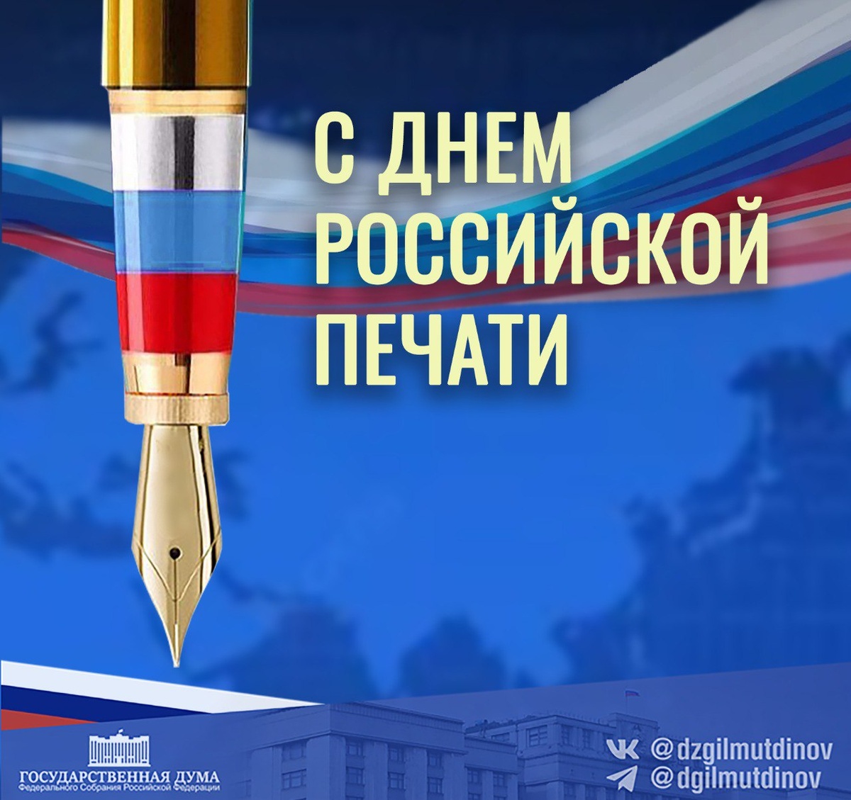 Сегодня , 13 января, в нашей стране отмечается профессиональный праздник работников периодической печати, СМИ, журналистов — День российской печати. В своей деятельности я регулярно взаимодействую с представителями средств массовой информации, в том числе с журналистами и работниками периодических печатных изданий. Это очень кропотливый и ответственный труд, требующий высокого профессионализма. Поздравляю вас с Днём российской печати! Желаю побольше благодарных читателей. И пусть у вас будет как можно больше хороших новостей, добрых советов и удивительных историй. Счастья вам и удачи! #динаргильмутдинов #ЕдинаяРоссия ЕР Госдума восьмойсозыв