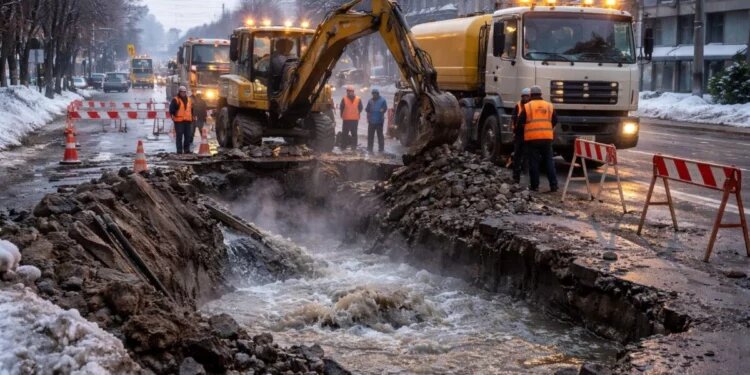 Ночная авария: в Костанае перекрыли участок из-за порыва водопровода