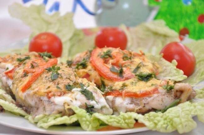 Рыбу нарезать на не большие кусочки, посолить, поперчить. Выложить рыбу в форму для запекания. Посыпать мелко нарубленным чесноком. Сверху смазать йогуртом. Помидор тонко нарезать полукольцами, выложить следующим слоем. Посолить.Зелень мелко порубить, сыр натереть на тёрке. Сыр смешать с зеленью и посыпать сверху. Это завершающий слой.