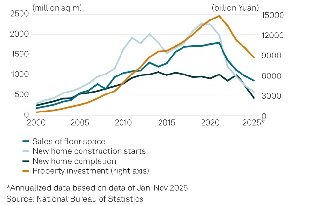 Многолетний нисходящий тренд в секторе недвижимости Китая.