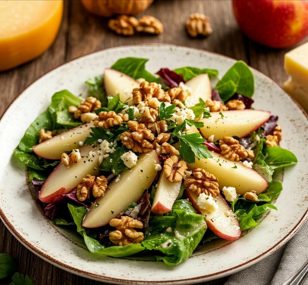 ПОЧЕМУ ЭТО ШЕДЕВР? 🎨 Это салат-баланс!Горьковатый цикорий, сладкое яблоко, маслянистые орехи и солоноватый сыр... А заправка с горчицей и мёдом связывает всё воедино. Он лёгкий, изысканный и прекрасно очищает нёбо перед основным блюдом. Идеален для праздничного стола! 😻