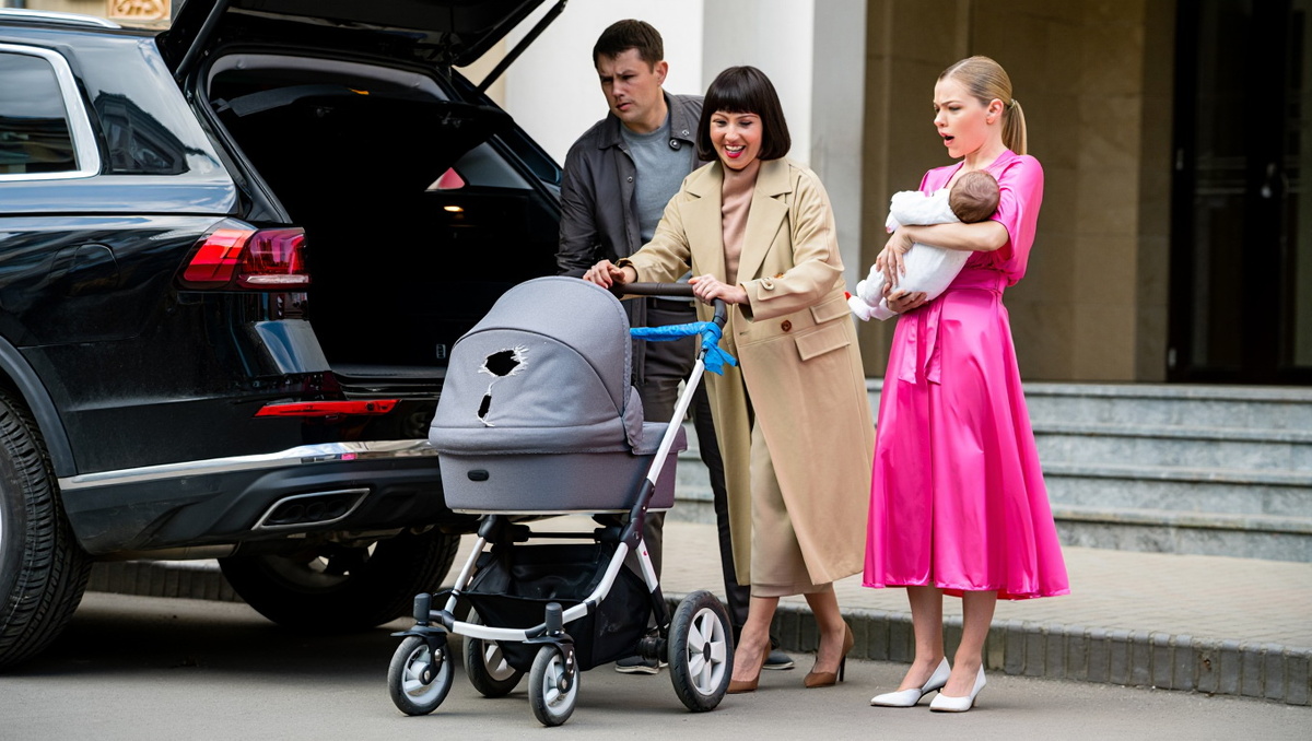 Наташа стояла на ступеньках роддома с новорождённой дочкой на руках и смотрела на то, что золовка только что вытащила из багажника. Грязно-серый каркас, порванный капюшон, заштопанный чёрными нитками, ручка, обмотанная изолентой. И пустое место там, где должно быть переднее левое колесо.