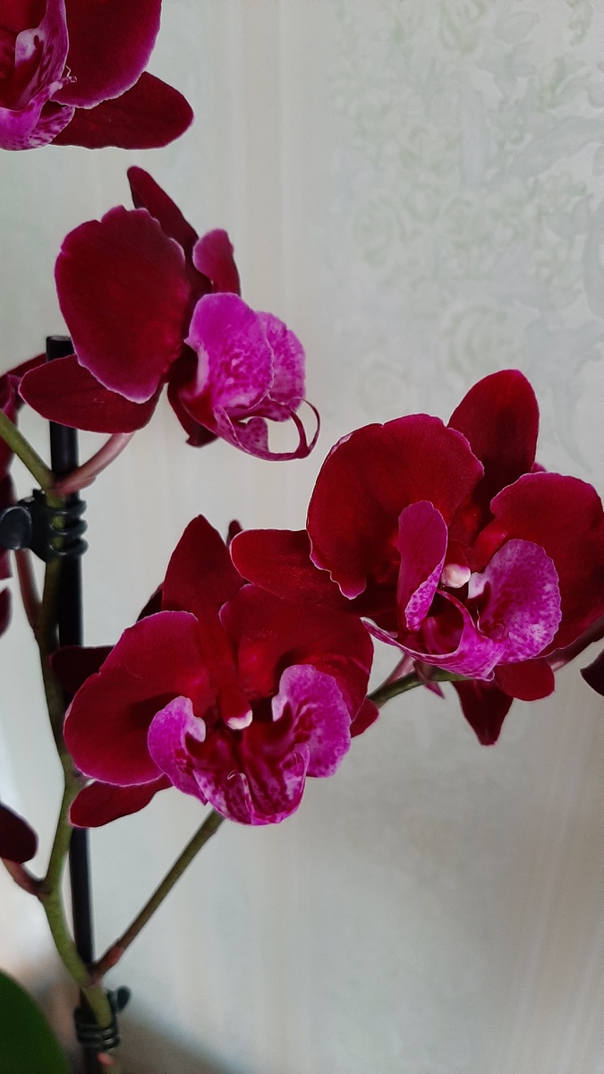 Привет! Покажу одну орхидею фаленопсис, которую покупала в Лемана ПРО (тогда это был Леруа Мерлен), точно не помню когда, примерно пару лет назад. Было лето, я приехала на свежий привоз орхидей, их только вывезли в торговый зал. Тогда было много чего интересного! Но я сразу приметила одного тёмного биглипа. Сам цветок средний по размеру, сантиметров семь-восемь. Весь такой бархатный, губа не совсем развёрнута, но она большая и это точно биглип. Такого я раньше не встречала. Посмотрите на этого красавца: Названия на горшке не было и эта орхидея по сей день у меня безымяшка. Дома ни разу не цвела. Постепенно корни в горшке стали пропадать (надо сказать, при покупке качество было не особо хорошим). Полагаясь на свой уже немаленький опыт, я не стала "дёргать" фаленопсис из горшка. Старалась уделять достаточно внимания, поливала. Орхидея выдала дома несколько листьев. Но, в общем немаленьком объёме своих подопечных, иногда случалось, что я про неё забывала и где-то недополивала, видимо. Та
