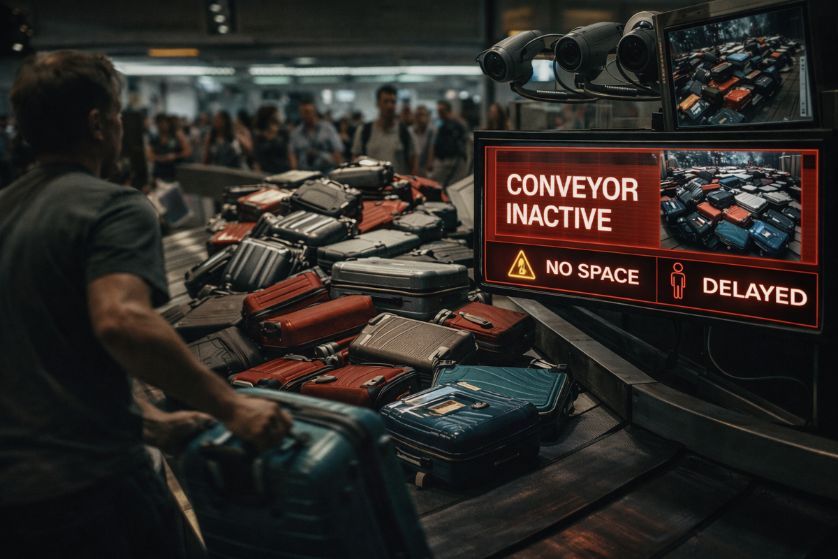 Есть история, которая гуляет по сети как кейс про "умную" выдачу багажа: в аэропорту поставили камеры и автоматизацию, чемоданы аккуратно раскладываются по свободным местам, все красиво. А потом пассажиров задержали на паспортном контроле - люди не дошли до ленты, багаж начал копиться, свободного места стало ноль. Система решила логично: "места нет - стоп". Конвейер замер, выдача фактически остановилась. И только когда люди руками убрали часть чемоданов с ленты, автоматика снова "увидела" пустые зоны и продолжила работу. Важная ремарка: у этой истории часто нет четкого первоисточника с названием аэропорта и официальным отчетом. Но сама ситуация абсолютно типовая - карусель реально может переполняться, и в реальных системах есть автоматика, которая останавливает подающий конвейер при заполнении и запускает его, когда место освобождается. Эта история не про "тупой ИИ". Она про то, как идеальная логика ломается на реальном мире, где люди приходят не по расписанию. У ленты неприятная физ
