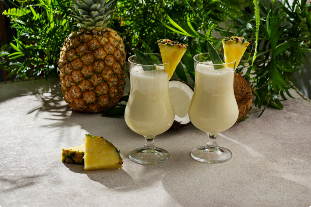 — Сперва разведите 2 грамма основы 30 граммами горячей воды, чтобы получить сироп. Размешайте капучинатором до полного растворения порошка. Теперь приготовьте пюре из ананаса: возьмите 100 граммов свежего сладкого плода и добавьте 100 граммов безалкогольного вина. Перебейте в блендере в пюре. Если хотите, чтобы напиток был менее волокнистым, получившуюся массу можете процедить через сито, — подсказала эксперт.