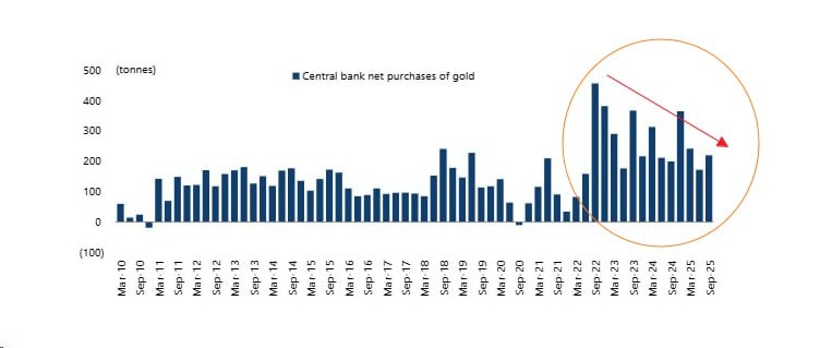 Мировые центральные банки продолжают наращивать запасы золота, установив рекорд в более чем 1200 тонн за 2025 год. В последние месяцы прошлого года темпы покупок колебались: 39 тонн в сентябре, 53 в октябре, 45 в ноябре. Несмотря на некоторое замедление в начале 2026-го, спрос со стороны ЦБ, особенно развивающихся стран, остается высоким, что связано с желанием снизить зависимость от доллара. Для инвестора это сигнал сохраняющегося интереса к золоту как безопасному активу в условиях глобальной нестабильности. Активы на базе золота (ETF, акции горнодобывающих компаний) могут стать отличной защитой от волатильности и валютных рисков. Держать золото или фиксировать прибыль? Отвечай! #новости #БезПафосаФинансы #золото #центральныебанки ##БПФ_Day