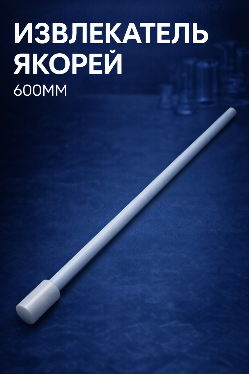 Извлекатель якорей как раз из этой категории: простой по виду, но критически важный в повседневной работе. Извлекатель якорей из фторопласта (PTFE) длиной 600 и 650 мм используется для аккуратного извлечения магнитных и якорных мешалок из реакторов, цилиндров, колб и стаканов. Без контакта руками, без риска повреждения стекла и без загрязнения среды. Фторопласт давно считается «золотым стандартом» для лабораторных инструментов: — химически инертен и не вступает в реакцию с реагентами