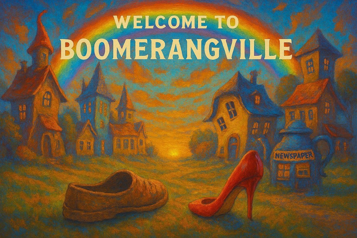Тапочек и Туфелька шли по солнечной, чуть искрящейся дорожке, где каждая пылинка танцевала, будто знала собственную партию в хореографии дня. Они болтали о пустяках, подпрыгивали, переглядывались — и вдруг над тропинкой проскользнул Юго-Западный ветер. Он был необычайно ярким сегодня: серебристо‑золотистые перья его потоков переливались, как ленты на праздничном барабане.