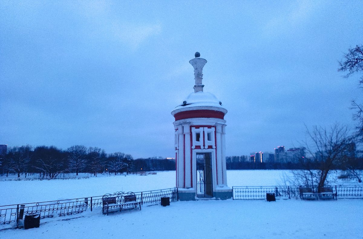 Верхний — площадь — 3,4 га, длина — 240 метров, ширина — до 165 метров. Имеет овальную форму, с заросшими берегами, непригодными для купания. Между прудами есть изящный мостик. Зайдем на мостик, он довольно крутой! С мостика видно симпатичную ротонду. Беседка-ротонда на берегу Большого Головинского пруда в парке усадьбы Михалк