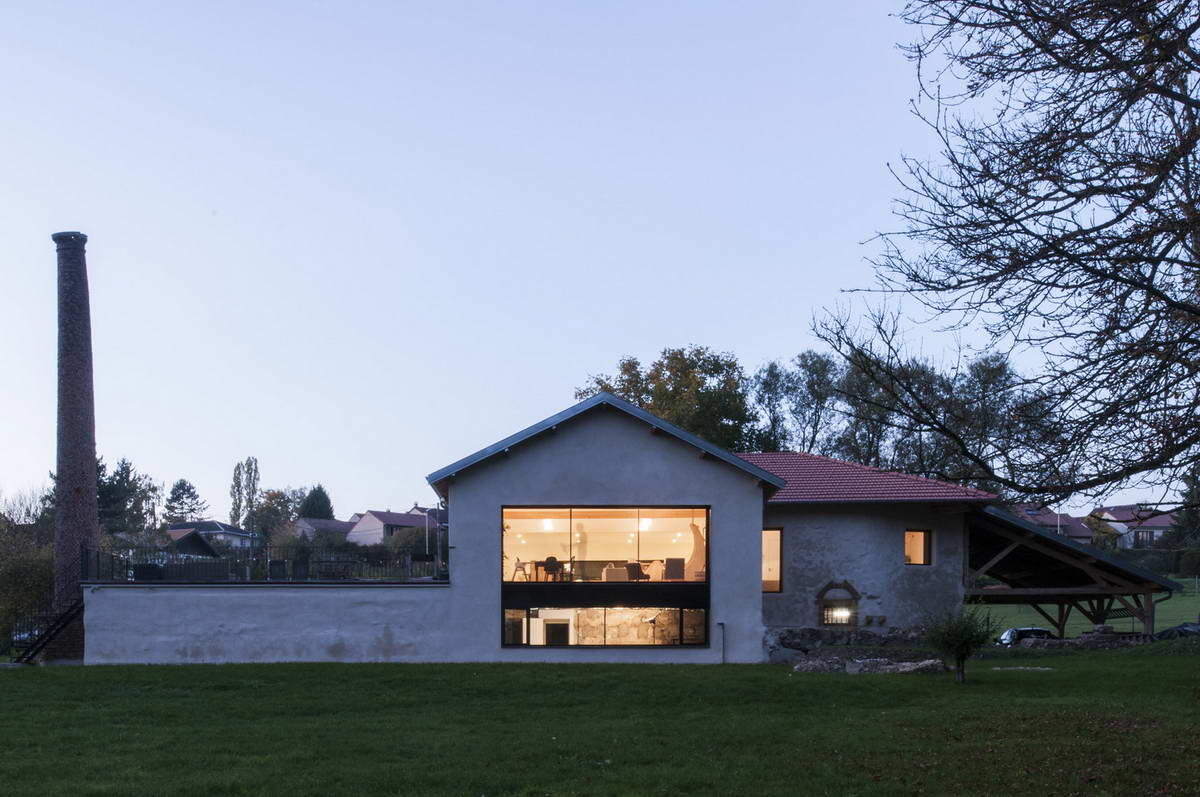 Это здание, которое долгое время оставалось пустым и заброшенным, расположено на пойме в довольно привлекательном районе. Мельница, разумно размещенная вдоль ручья, затем превратилась в небольшую мастерскую по изготовлению металлоконструкций, отсюда и наличие большого кирпичного камина. Наконец, это стало фермой, где жили люди и размещался рогатый скот. Архитекторы столкнулись с классическим случаем старой и плохо построенной фермы, которая в течение многих лет содержалась в плохом состоянии и нуждалась в важном ремонте с «разумным» бюджетом. Архитектура и участок нетипичны и привлекательны, но здание слишком большое и сильно повреждено. Несколько претендентов изучали проекты реконструкции, однако все они сдались, столкнувшись с масштабом и сложностью работы. Для реализации этого проекта авторам пришлось принять несколько радикальных решений: — удалить часть конструкции: восточное крыло,