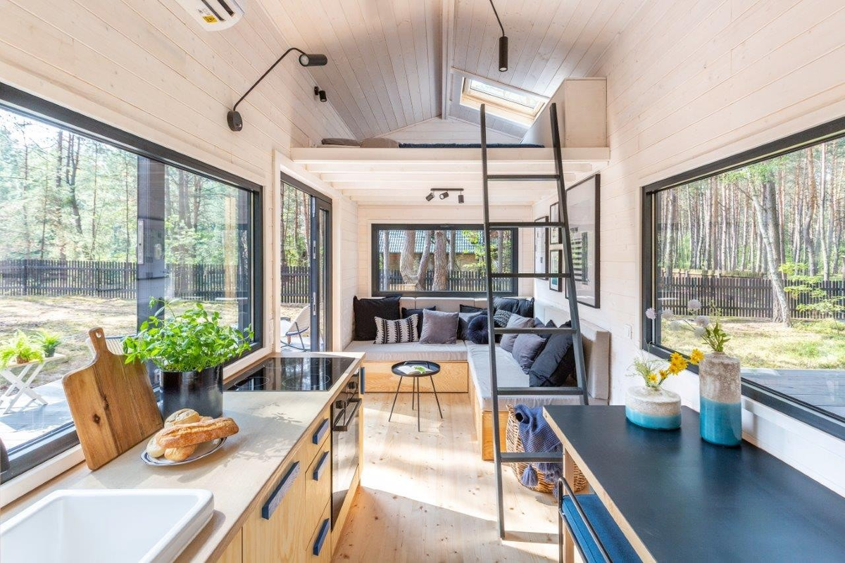 Мини-дом с террасой в стиле американского ранчо: европейский взгляд на комфорт Этот мини-дом сочетает в себе простор, свет и стиль. В нем есть терраса, как у настоящего ранчо. Внутри - современный интерьер и большие окна. Европейский подход к классике удивляет. Почему дизайнеры любят такие проекты? Ответ неочевиден. Фотография: 110km.ru В мире компактных домов, где каждый метр на счету, проект Forest от Tiny Smart House Polska выделяется своим шармом. Этот мини-дом словно создан для того, чтобы сломать стереотипы о строгости и компромиссах. Его огромное окно, современный интерьер и уютная терраса на свежем воздухе делают его не просто жильем, а настоящим произведением дизайнерского искусства. Фото: Tiny Smart House Polska Автодома – это не только способ сэкономить место и деньги, но и вызов архитекторам. Здесь нельзя позволить себе лишние детали. Лес - пример того, как можно совместить функциональность и эстетику. Внутри нет ничего лишнего: светлые стены, лаконичная мебель, продуманное