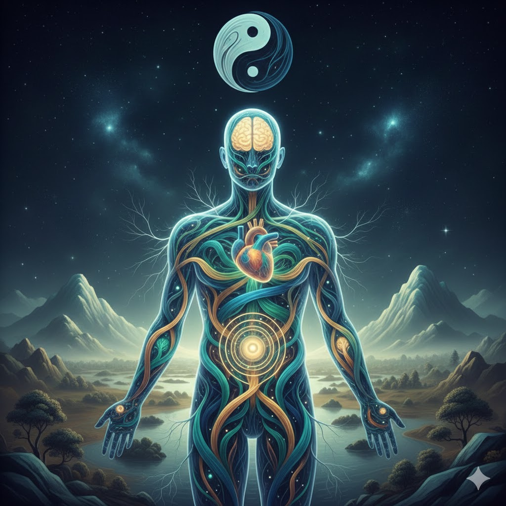 Китайская медицина и практики цигун рассматривают человека не как набор органов и процессов, а как живую систему потоков, ритмов и взаимосвязей. Здесь нет разделения на «тело отдельно» и «психика отдельно». Всё, что происходит внутри человека, — это разные проявления единого движения жизненной энергии, называемой ци. Чтобы понять логику китайской медицины, важно сразу отказаться от привычного западного вопроса: «Где находится болезнь?»