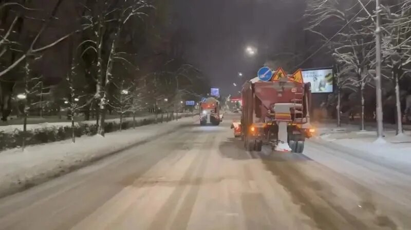 В Краснодаре дорожники и коммунальщики продолжают круглосуточно работать. Ночью дороги, мосты и путепроводы обработали песко-соляной смесью. Как сообщил мэр Евгений Наумов, за ночь в краевом центре от гололеда обработаны более 450 километров дорог. Использовано 410 тонн песко-соляной смеси. Всего автомобили прошли более 80 участков, некоторые из них обработаны по два раза. Ночью для этого задействованы более 30 единиц специальной техники: комбинированных дорожных машин, погрузчиков, автогрейдеров. Обработку выполнили, в том числе, на основных городских маршрутах: Глава города добавил, что в настоящее время производится пересменка водительского состава и подготовка к работе в дневную смену. Дополнительно привлечены автогрейдеры компаний-застройщиков. Они будут задействованы на расчистке дорог в поселке Российском, Музыкальном микрорайоне, на подъездных дорогах к поселкам Индустриальному и Победителю. В течение дня обработкой и очисткой улично-дорожной сети города займутся 27 комбинирова