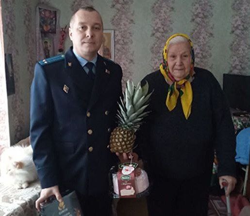 "От всей души" 🌟Коллектив прокуратуры Докшицкого района поздравил с новогодними праздниками бывшую малолетнюю узницу Великой Отечественной войны Феодосию Островко, одиноко проживающую жительницу агрогородка Барсуки. 🎁 Прокурор района Ян Сосновский передал женщине подарки и пожелал здоровья, благополучия и счастья. Феодосию Петровну часто посещают дети и внуки, но внимание со стороны власти, официальных лиц, школьников также трогает ее сердце. В ответ она всегда желает своим гостям мирного неба над головой, потому что хорошо знает его высокую цену. ____ Сайт | Instagram | VK | OK | TikTok |Telegram | Чат-бот