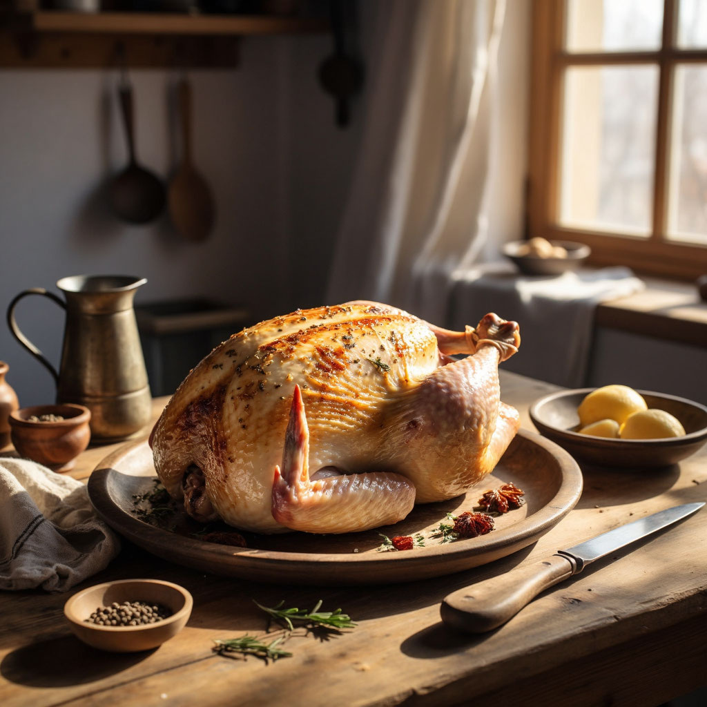 Фаршированная курица - блюдо показательное. Оно никогда не было «праздничным ради украшения», а ценилось за другое: одновременную готовность мяса и начинки. Ошибка в температуре или плотности фарша - и курица либо пересыхает, либо начинка остаётся сырой. Поэтому в старой кухне фаршированную птицу готовили строго по технологии, без импровизаций. Разберём этот процесс подробно. Состав начинки нейтральный - она должна подчёркивать вкус птицы, а не спорить с ним. Курицу тщательно осматривают, удаляют остатки пера, промывают и обсушивают. Главная задача - сохранить кожу целой.