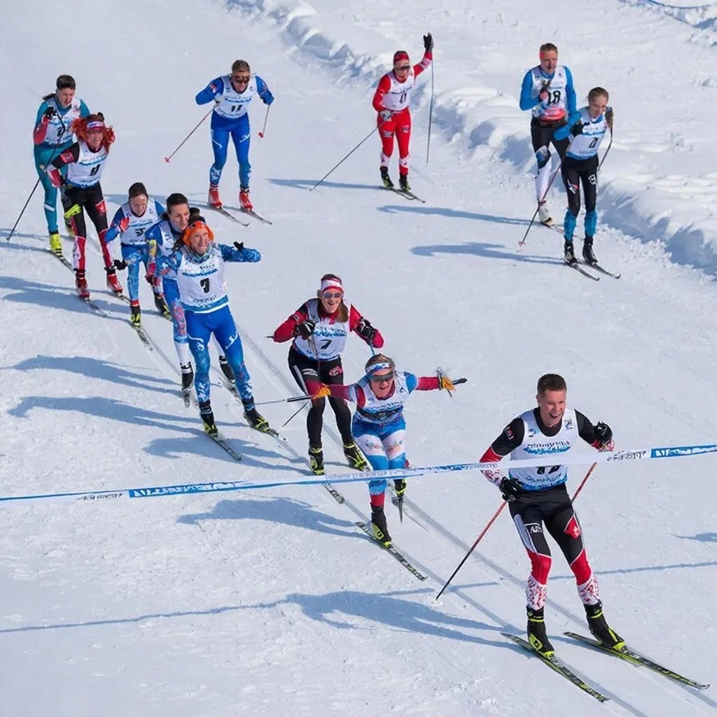 Снежинки кружились над полем словно пёрышки исполинской птицы, замершей высоко-высоко в небесах. Они мягко ложились на гладкую лыжню, уже проторённую сотнями шагов до тебя. Твой взгляд скользил вперёд, ловя каждое движение света среди деревьев, играющего бликами солнца сквозь серебристые ветви сосен. Перед тобой открывалась дорога, устланная искрящимся ковром зимы, пологими спусками и глубокими