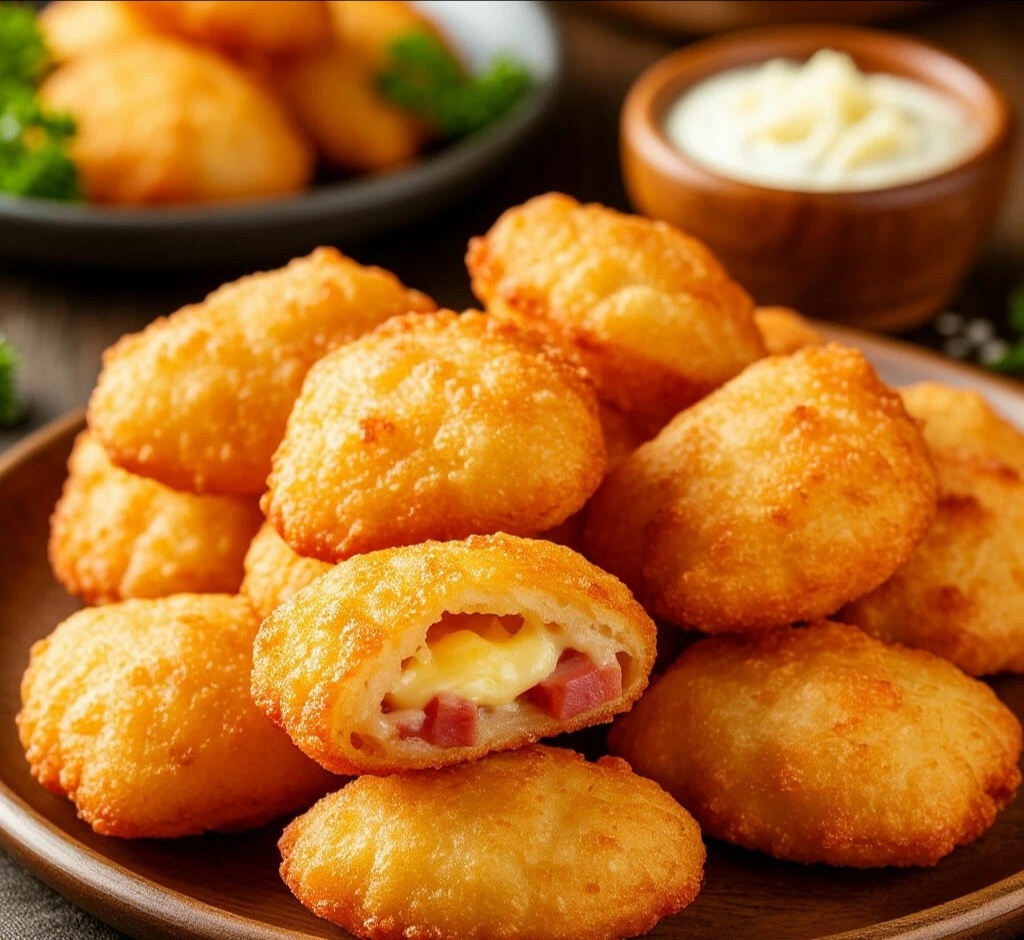 ИНГРЕДИЕНТЫ (на 20-25 шт.): 🧾 ·Готовое дрожжевое тесто (или тесто для пиццы) — 500 г ·Тёртый сыр (гауда или эдам) — 150 г 🧀 ·Ветчина — 100 г (мелкий кубик, опционально) 🥓 ·Яйцо — 1 шт. (для смазки) 🥚 ·Растительное масло — для фритюра (глубокой жарки)