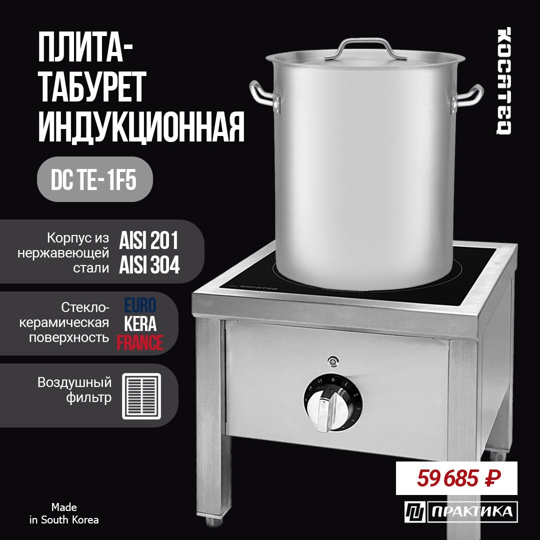 На профессиональных кухнях часто возникает одна и та же проблема - ТЯЖЕЛЫЕ наплитные котлы. Их сложно устанавливать и перемещать, особенно когда плита стандартной высоты 85 см. Большой вес и высота котла делают работу неудобной и небезопасной. Стационарный пищеварочный котёл может решить этот вопрос, но его стоимость слишком высока для большинства заведений, особенно в бюджетном сегменте. Поэтому такое оборудование подходит далеко не всем. Плита-табурет KOCATEQ DC TE-1F5 - более доступная и практичная альтернатива. За счёт низкой высоты, всего 37 см, на неё удобно и безопасно устанавливать крупные наплитные котлы весом до 70 кг. Работать становится проще, а нагрузка на персонал заметно меньше! ЧТО НУЖНО ЗНАТЬ ОБ ЭТОЙ МОДЕЛИ: ◽️ индукционный нагрев ◽️ размер конфорки 34 × 34 см ◽️ простой и надёжный 11-позиционный регулятор мощности ◽️ максимальная нагрузка до 70 кг ◽️ стеклокерамическая поверхность Eurokera (Франция) ◽️ эффективная система охлаждения с отдельными вентиляторами 🔘
