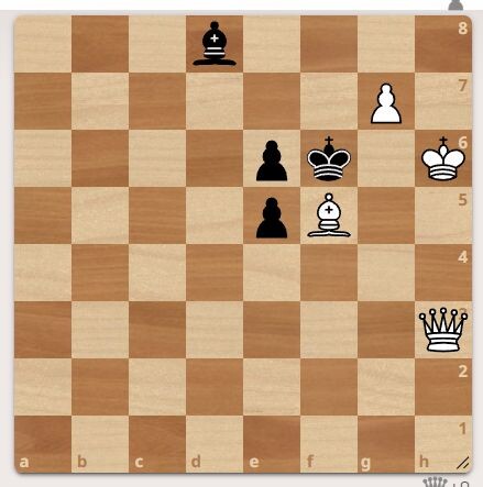 Белой пешке 1 ход до ферзя. У черных две пешки и слон. Ход белых, мат в 2 хода. Автор задачи В. Кузьмичев, 2026 год. Подписывайтесь и ставьте лайк. Первый верный ход смотрите в галерее.