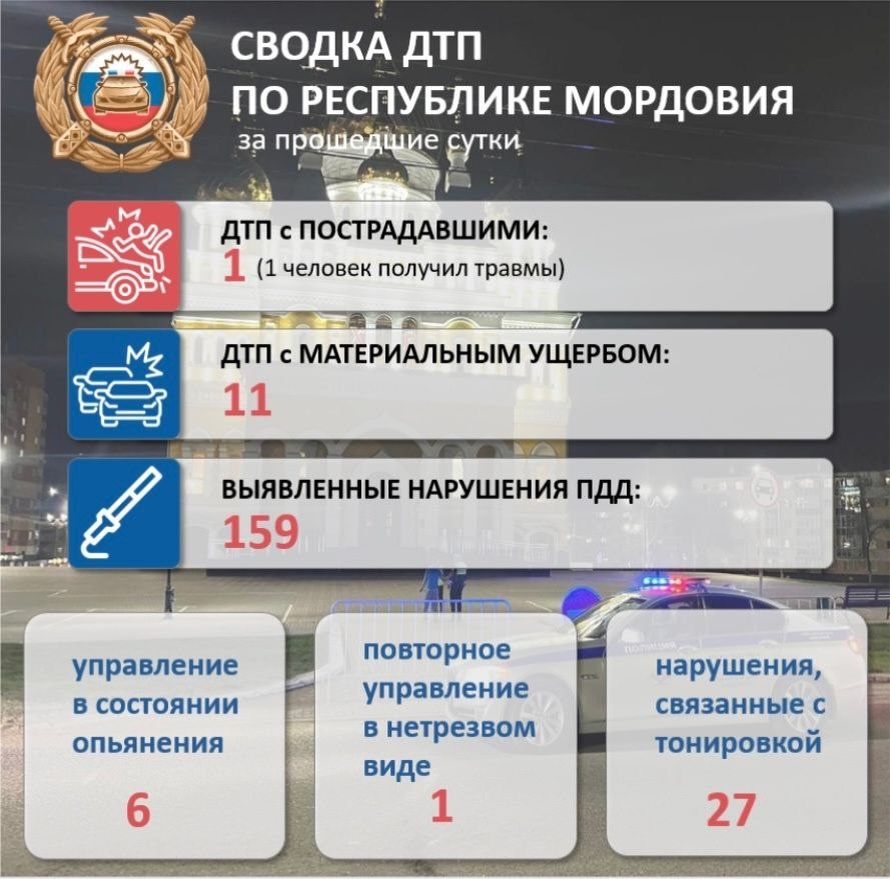 👮♀️ Обстановка с аварийностью на дорогах Мордовии и нарушениями ПДД за 12 января 2026 года