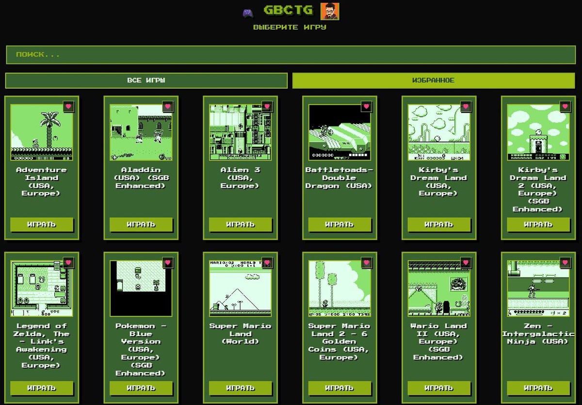 🔥 Продолжаю свою ретроигровую инициативу в телеграме. Теперь здесь можно поиграть в классические игры с Game Boy Classic и Game Boy Color. - 500 игр 🕹 - работает практически на любом устройстве 📱 - специальная система фильтров меняющая цвета игрового экрана (кнопка P) 📟 - поддержка геймпадов 🎮 - удобный поиск и система избранного Играем здесь или в Retro Games Center TG