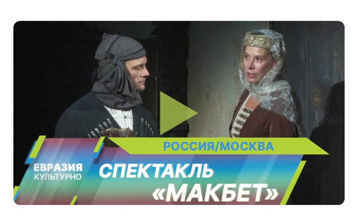 Режиссер перенес действие на Кавказ. В атмосфере кровной мести и суеверий роковая история о жажде власти обретает новый колорит. Постановка исследует внутренние метания героя, его путь от амбиций к потере рассудка. По словам режиссера, главной задачей команды было достичь соразмерности масштабам идей английского классика. Подробнее – в программе «Евразия. Культурно». Следующие показы: 20 января, 7, 8 февраля, 17, 18 марта Смотреть программу
