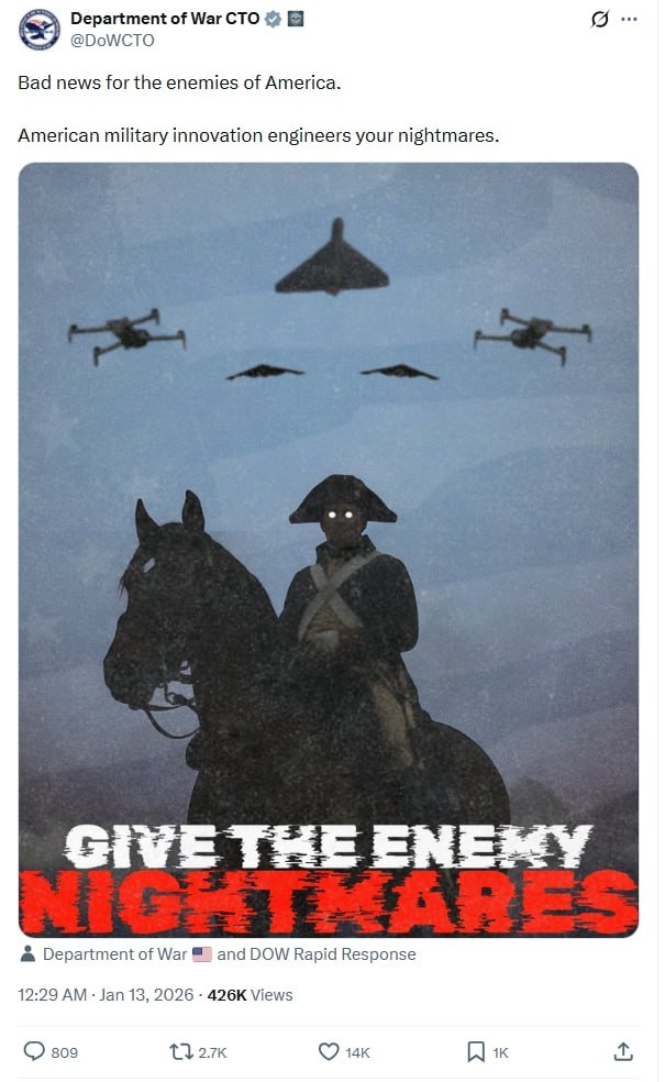 Минобороны США разместило в соцсети X грозный плакат с подписью «Вызовите у врага кошмары